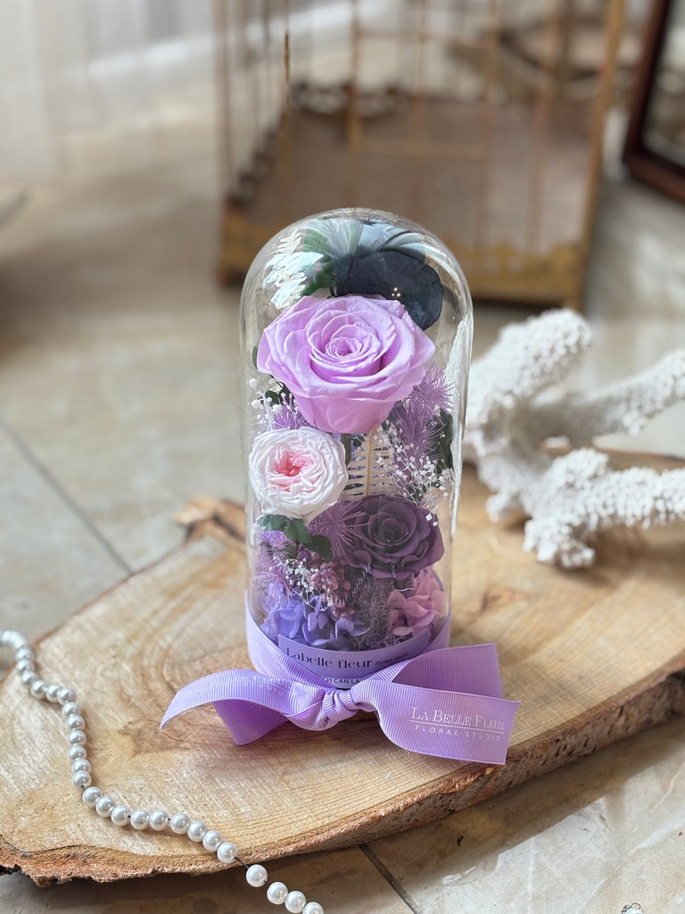 Preserved mix flowers in a dome