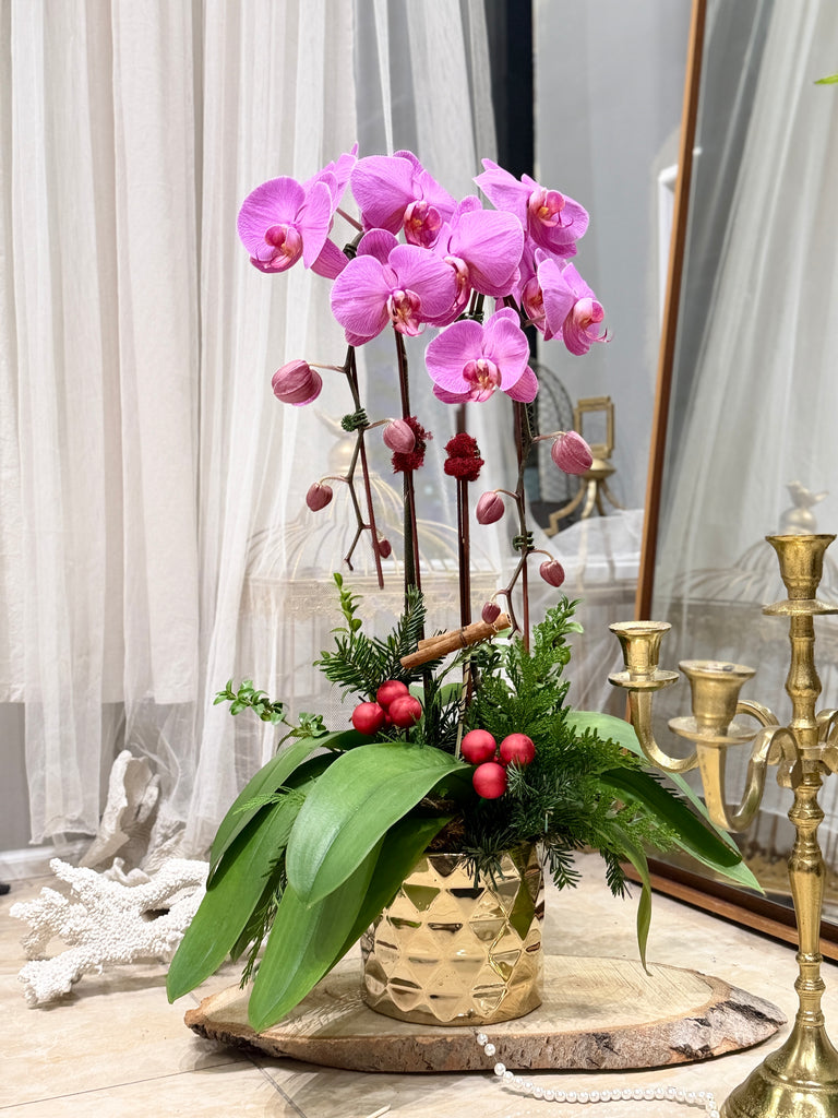 Our Christmas collection brings together a variety of floral styles, textures, and decorative finishes. No matter what you envision for your holiday decor, you will find a design that adds charm, elegance, and personality to your space. Whether you prefer traditional styling or something more modern, our team works with the most loved seasonal blooms to create designs that feel meaningful and memorable. Everything is customized with the careful touch of our designers, who create floral pieces that feel festive without being overwhelming.