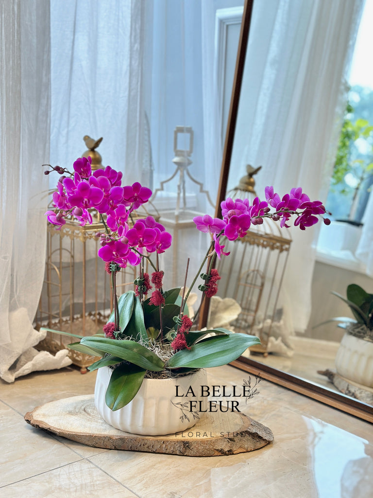 Delight your sweetheart with La Belle Fleur' Orchid Gifts for Her, sure to bring a radiant smile to her face. Our vibrant floral arrangements in an array of hues are not only picturesque but also a perfect way to earn some extra brownie points.