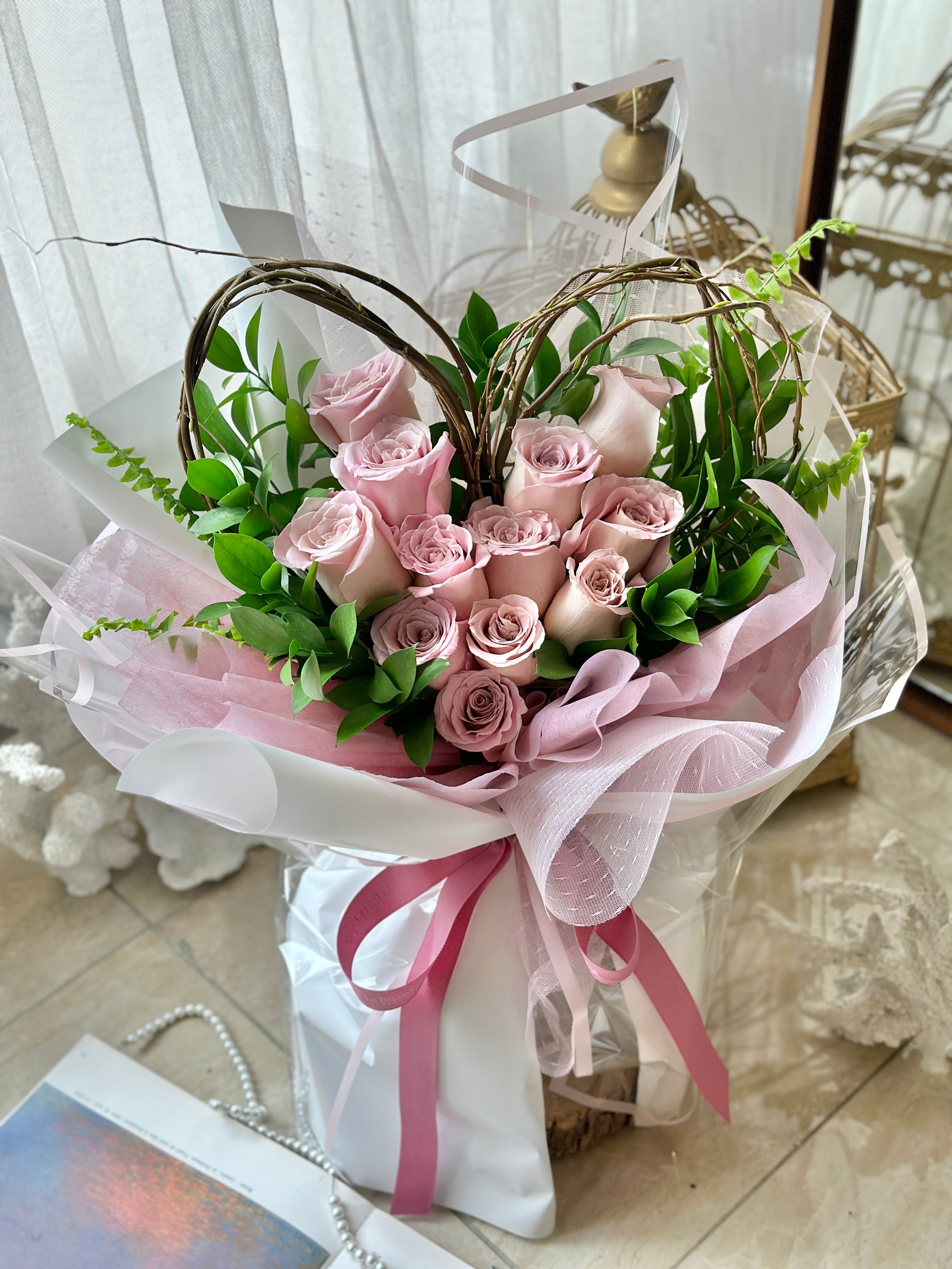VDay - Heart Shaped Rose Bouquet (12 or 24 Roses)